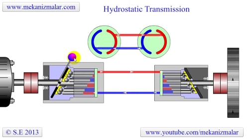 Above you can see a diagram illustrating how both a CVT and hydrostatic transmission work.