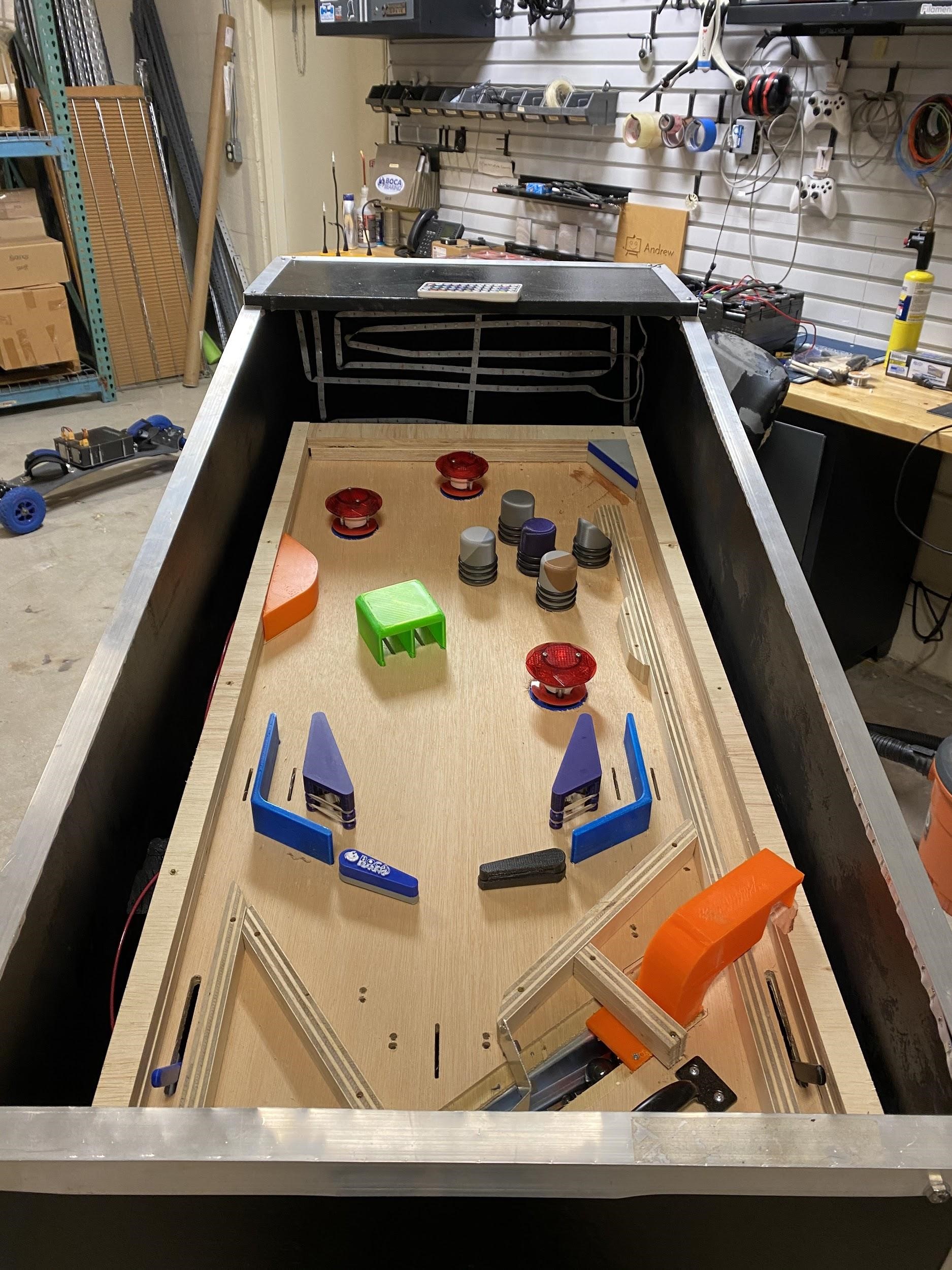 Overall though this project took longer than anticipated, and some of the features initially anticipated had to be abandoned, I would still call this project a resounding success. I have learned a lot about how intricate these things actually are, how to come up with work arounds to unanticipated problems, and how to cut your losses when something just isn't going to work out like you expect. I had a lot of fun building and designing this machine and for anyone looking to try to build a pinball machine similar to this one I will soon have my Github page and GrabCad page updated with the correct files so that you can build anything I did for this machine with relative ease. https://github.com/Jeff-the-plant/Boca-Bearing-Pinball https://grabcad.com/james.laumeyer-1