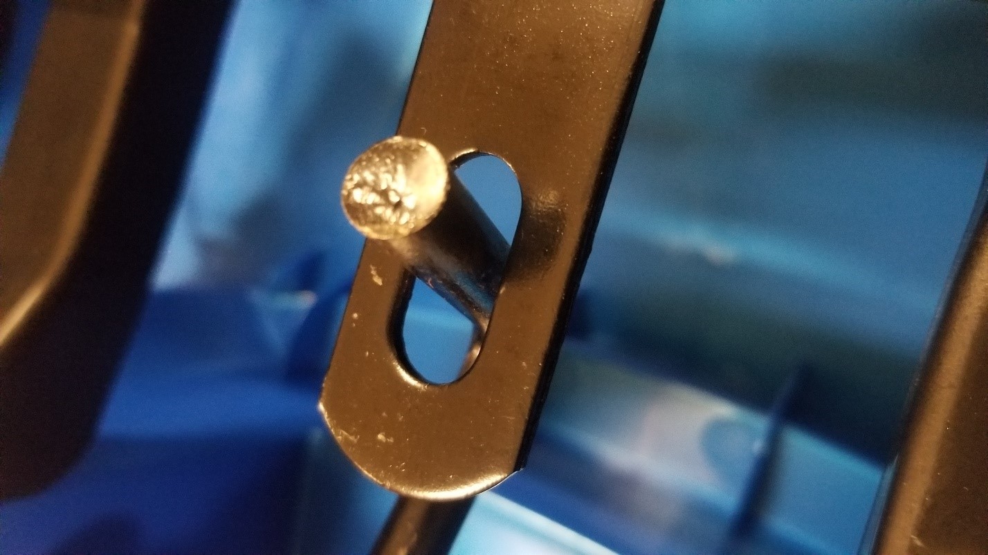 Above – here is a close up of the gap between the steering output shaft and the pin connected to the steering arm